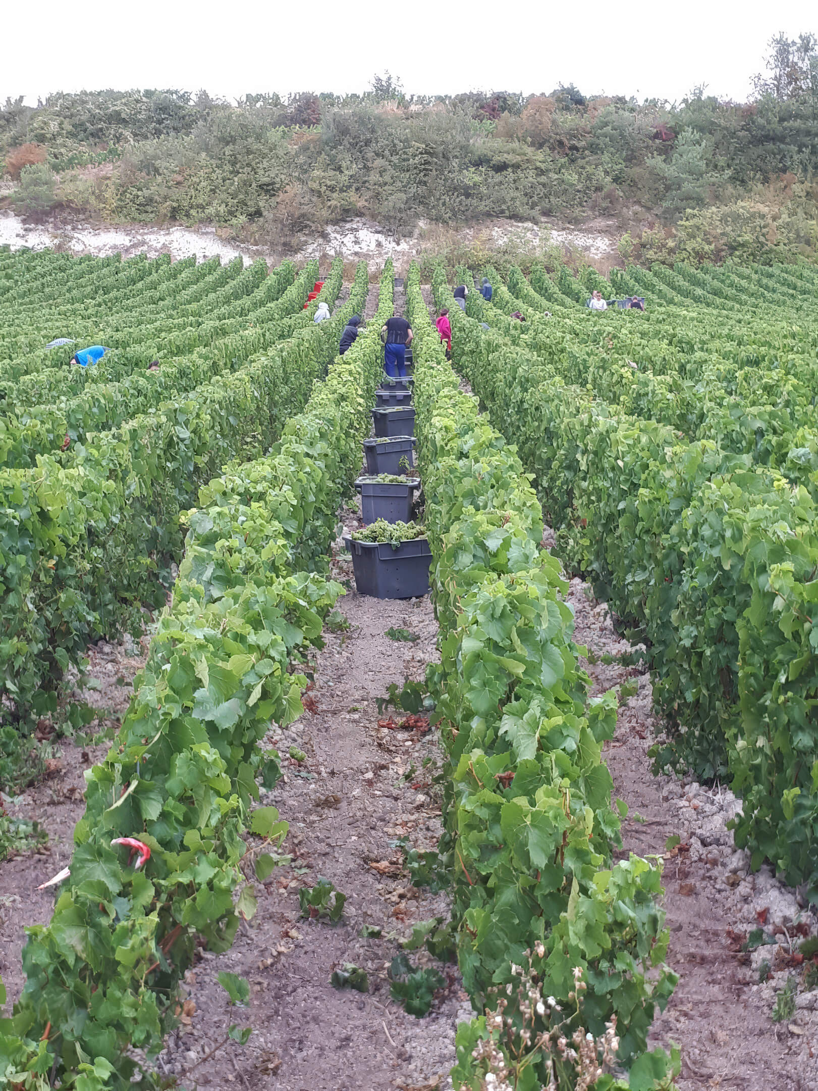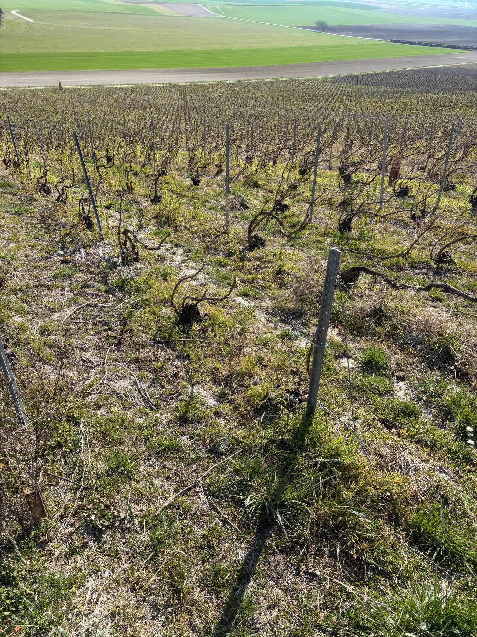 La taille de la vigne débute au début de l’hiver et peut s’étendre jusqu’à la fin du mois de mars. Cette étape essentielle conditionne le développement des pieds, leur équilibre végétatif et le rendement futur. En régulant le nombre de bourgeons conservés, la taille permet de maîtriser la vigueur de la plante et d’orienter la production vers une qualité optimale. La technique utilisée ici est la taille en chablis, une méthode traditionnelle favorisant une production harmonieuse et régulière.